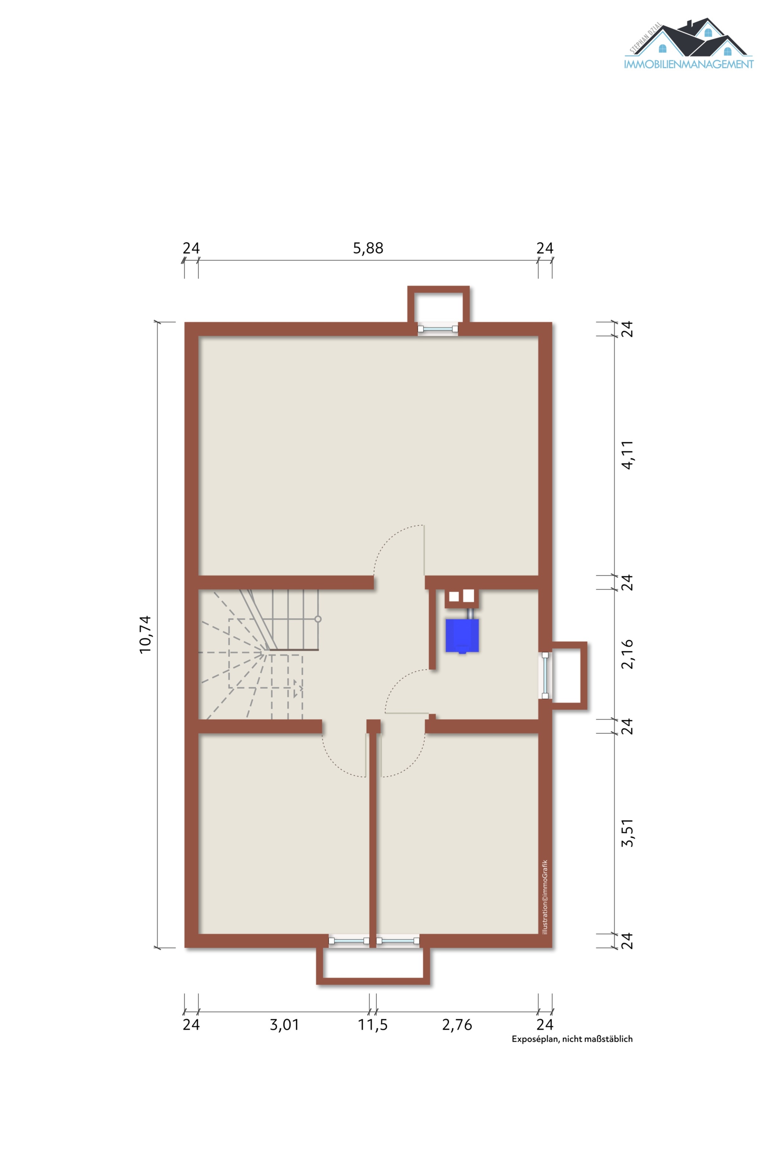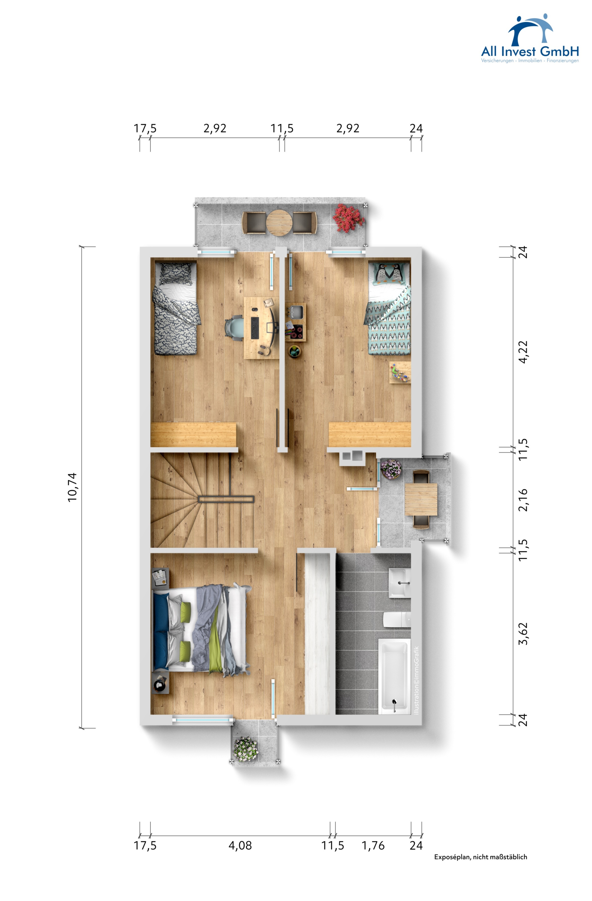 + Zimmer: 4 (3 im Obergschoss und 1 großzügiger Wohn-/Essbereich im Erdgeschoss)